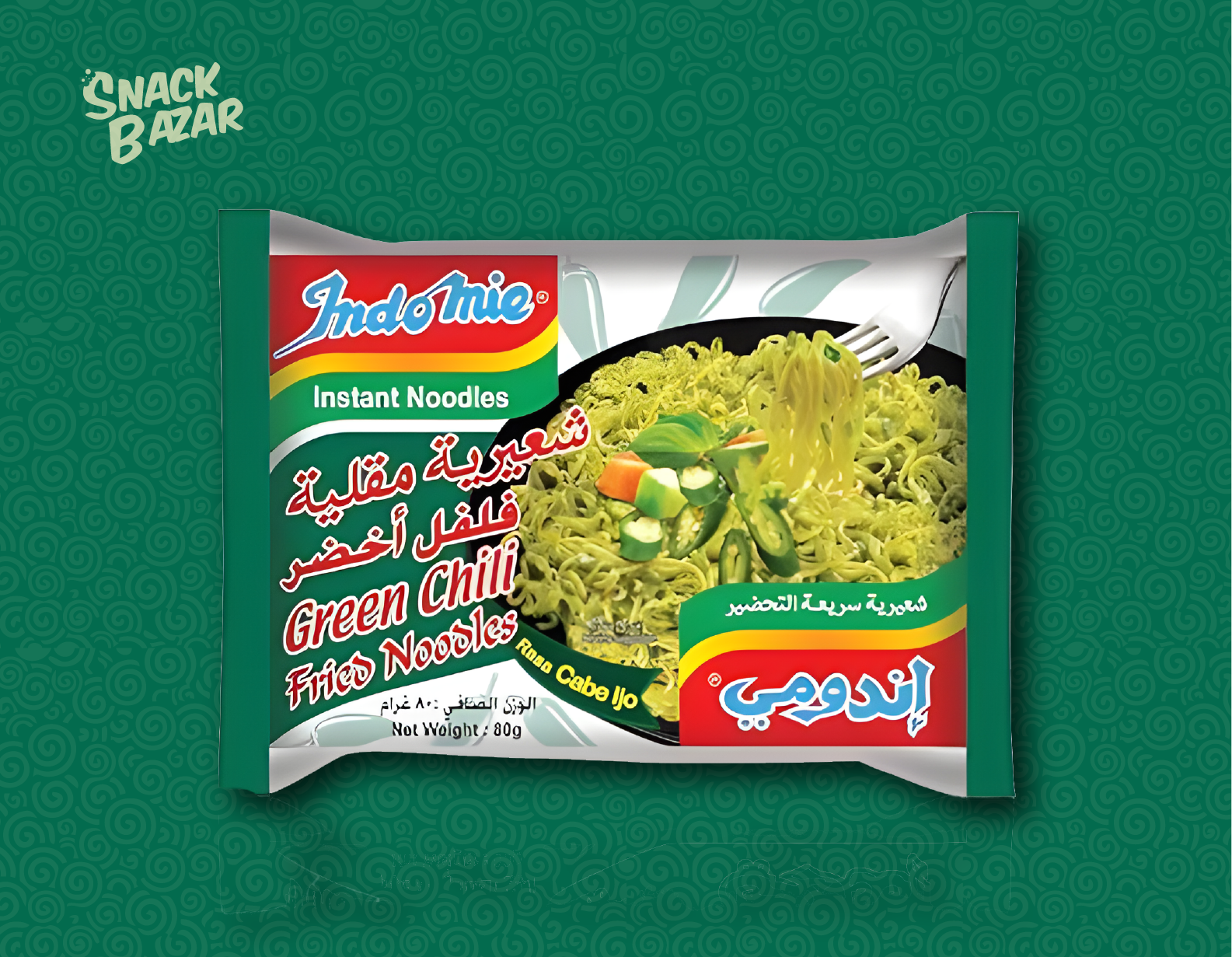 Indomie Green Chilli Instant Noodles 75g (KSA Imported) offers a unique and flavorful noodle experience with the refreshing heat of green chilli. Made with high-quality ingredients, these instant noodles deliver a delicious balance of savory taste and mild spicy kick, perfect for everyday meals or quick snacks. Easy to cook and ready in minutes, Indomie Green Chilli noodles are a favorite choice for noodle lovers seeking a tasty and convenient meal option. Order original KSA imported Indomie Green Chilli Instant Noodles online in Pakistan from Snack Bazar and enjoy authentic international flavor at great value.